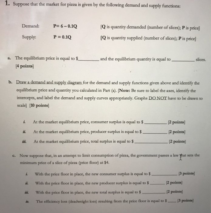 Solved 1 Suppose That The Market For Pizza Is Given By T
