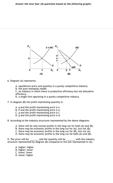 B output will be the same as in diagram a. With the industry structures represented by diagram. The price will be and the quantity will be with the industry structure represented by diagram b compared to the one represented in a.