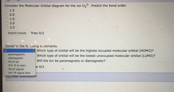 Solved Consider The Molecular Orbital Diagram For The Ion