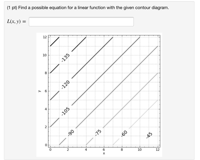 Find a possible equation for a linear function with the given contour diagram. Find a possible equation for a linear function with the given contour diagram find a possible equation for a linear function with the given contour diagram jul 21 2018 0652 am. The goal of this section is to introduce a variety of graphs of.