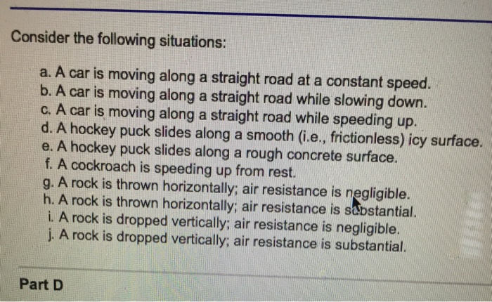 Solved Part H Which Of These Situations Describe The Moti
